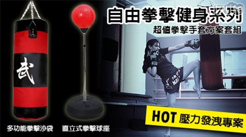 只要799元起(含運)即可享有原價最高4,792元自由拳擊有氧健身系列:(A)特厚多功能拳擊沙袋-1入/2入/4入/(B)直立式拳擊球拳擊座-1入/2入/(C)特厚多功能拳擊沙袋-半指拳擊手套組1組/(D)特厚多功能拳擊沙袋-競技拳擊手套組1組/(E)直立式拳擊球拳擊座-半指拳擊手套組1組/(F)直立式限時拳擊球拳擊座-競技拳擊手套組1組。